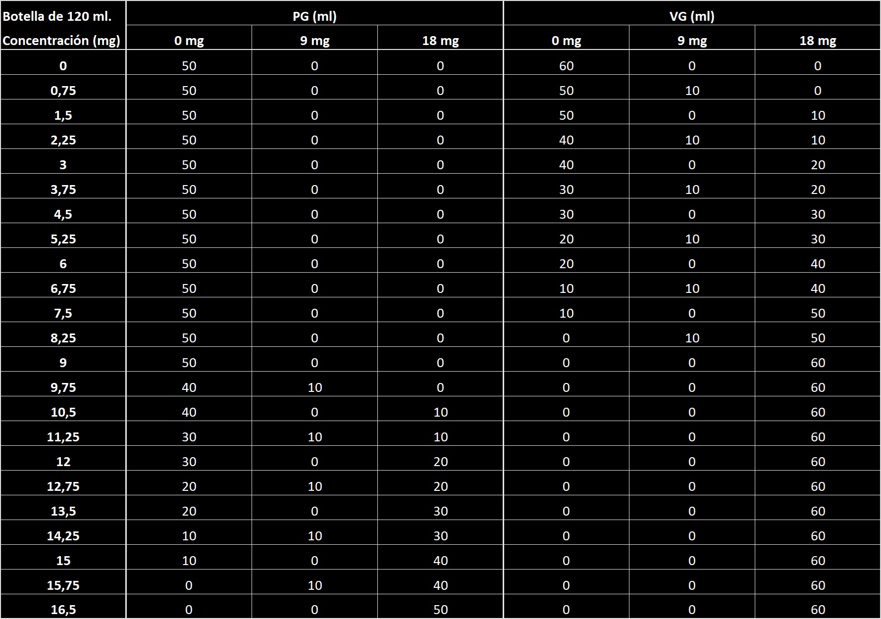 Para obtener el líquido final, hay que añadir 110 ml de base PG/VG, que pueden ser sin nicotina, con nicotina normal o sales de nicotina.